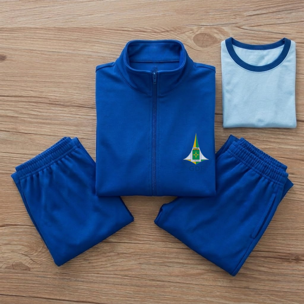 O kit de uniformes inclui um total de sete peças: 3 camisetas, 2 bermudas, 1 calça e 1 casaco. Estes itens foram cuidadosamente selecionados para atender às necessidades dos alunos durante o período escolar.